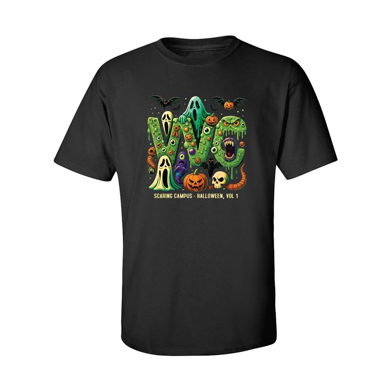 Kick off a brand-new VVC Halloween tradition with the first edition of our exclusive Halloween apparel collection! This year’s design — the Slimy Edition — features spooky ghosts, creepy pumpkins, and dripping green slime spelling out VVC, with the tagline “Scaring Campus – Halloween, Vol. 1. Vol. 1 marks the start of an annual Halloween shirt release. Collect them all as we unveil new designs in the years to come! Design: Full-color slimy VVC artwork with classic Halloween icons Fit: Unisex, soft cotton blend for comfort and durability Color: Classic black tee for a bold seasonal look. Don’t miss out — once this edition is gone, it’s gone! Start your VVC Halloween collection today with Vol.1.